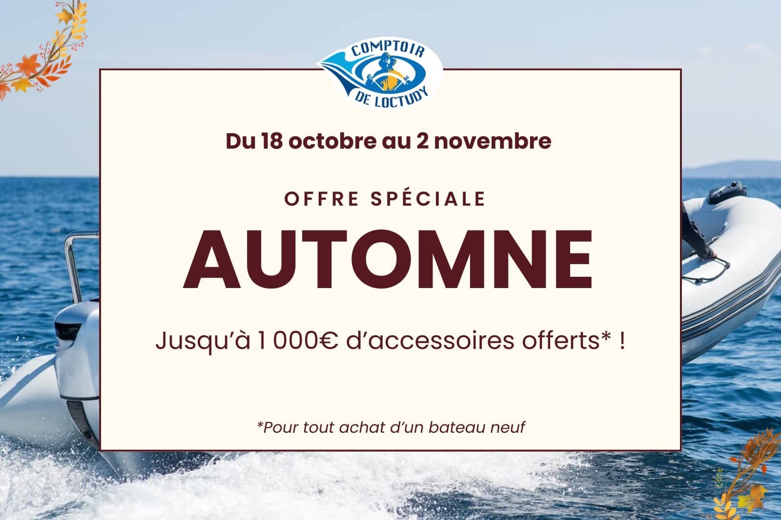 Du samedi 18 octobre au samedi 2 novembre 2025, le Comptoir de Loctudy vous réserve une offre exceptionnelle sur l’achat de votre bateau neuf. 🚤
