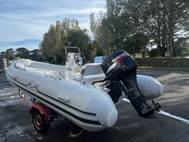 Motorisé par un Suzuki DF50 4 temps (environ 400h), fiable, économe et silencieux.